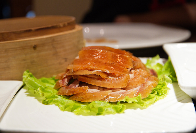 The wood-fired duck is carved at your table at this moody banquet hall. The crispy skin comes off first (to be dipped in sugar), followed by the tender meat, which is sliced from the breast and served with pancakes, vegetables and garlic sauces.